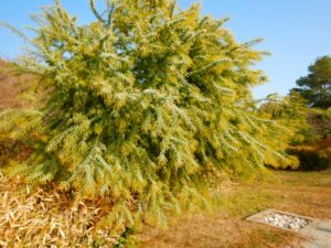写真の木は、連絡口ゲートそばの、花の丘道沿いの園内地図看板の右側にある木です。いい感じに開花しており、ロウバイの甘い香りが堪能できます。
