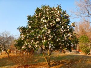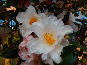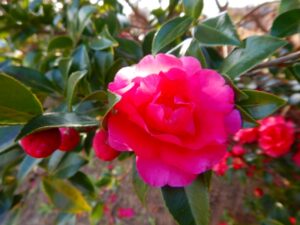 園内あちこちチョコッとずつ、ツバキ類が咲いています。