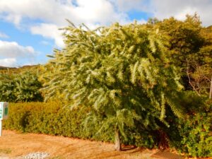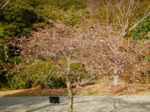 写真の木は、連絡口ゲートそばの、花の丘道沿いの園内地図看板の右側にある木です。今日でほぼ満開でした。とってもいい香り!この木以外では、連絡口ゲートそばのトイレからちょっと南下したところに「花の丘道」という表示板があるのですが、その後ろ辺りの2本がチョコッと咲いてきました。