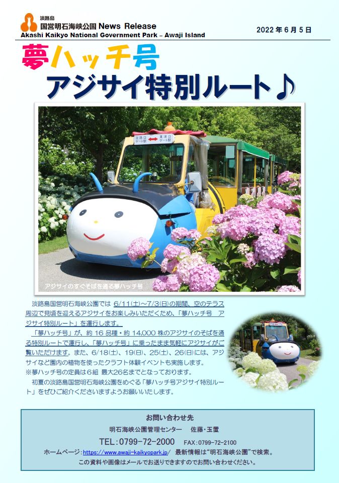 ★記者発表資料はこちら⇒09記者発表◇夢ハッチ号アジサイ特別ルート220605