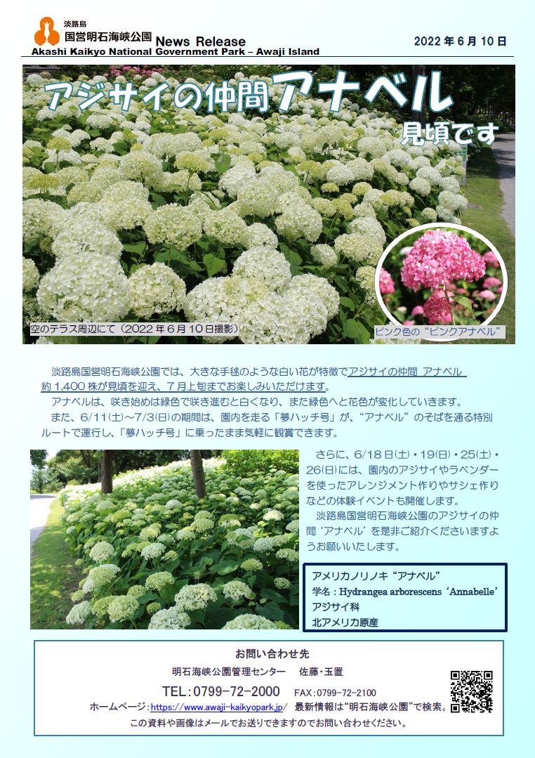 ★記者発表資料はこちら⇒10記者発表◇アジサイの仲間’アナベル’見頃220610