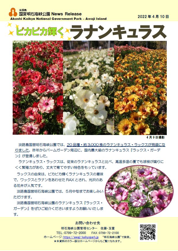 ★記者発表資料はこちら⇒01記者発表◇キラキラ光るラナンキュラス220410