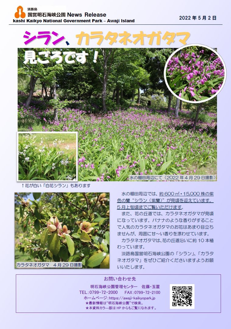 ★記者発表資料はこちら⇒04記者発表◇シラン、カラタネオガタマ見ごろ220502