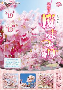 2月19日(土)~3月13日(日)春一番の丘で、河津桜の開花にあわせて「早咲き桜まつり」を開催いたします。