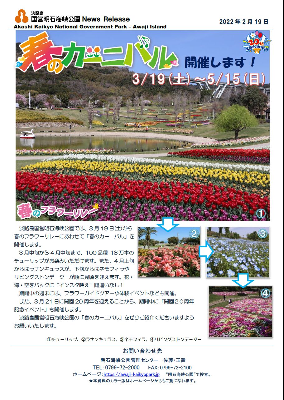 2022年3月21日(月祝)で、淡路島国営明石海峡公園は、開園20周年を迎えます。