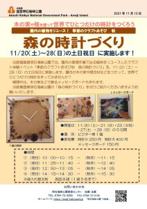 園内の植物リユース体験プログラム「季節のクラフトあそび秋」は「森の時計づくり」を開催します。