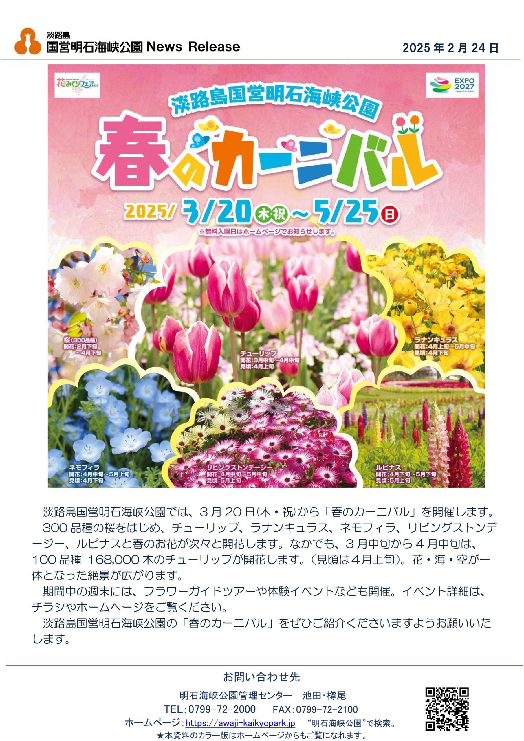 ★記者発表資料PDFはこちら⇒27記者発表◇春のカーニバル開催250224(チラシあり) 2025春のカーニバル