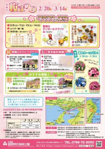 2月20日(土)~3月14日(日)春一番の丘で、河津桜の開花にあわせて「早咲き桜まつり」を開催いたします。