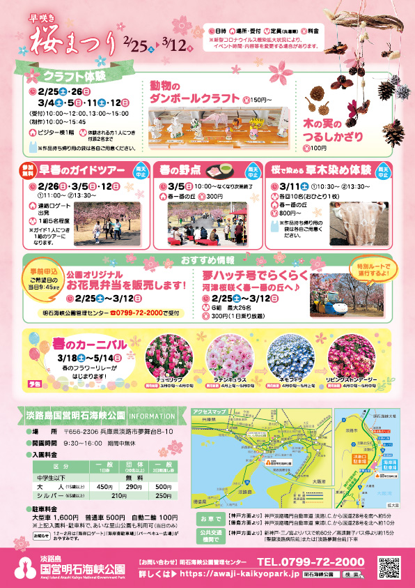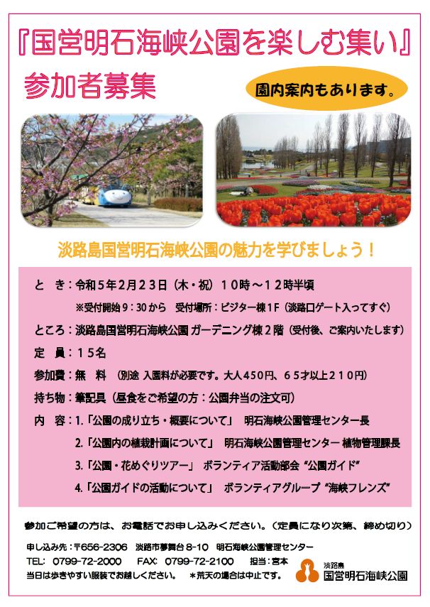 申込みは、2/1(水)よりお電話で明石海峡公園管理センターまで。