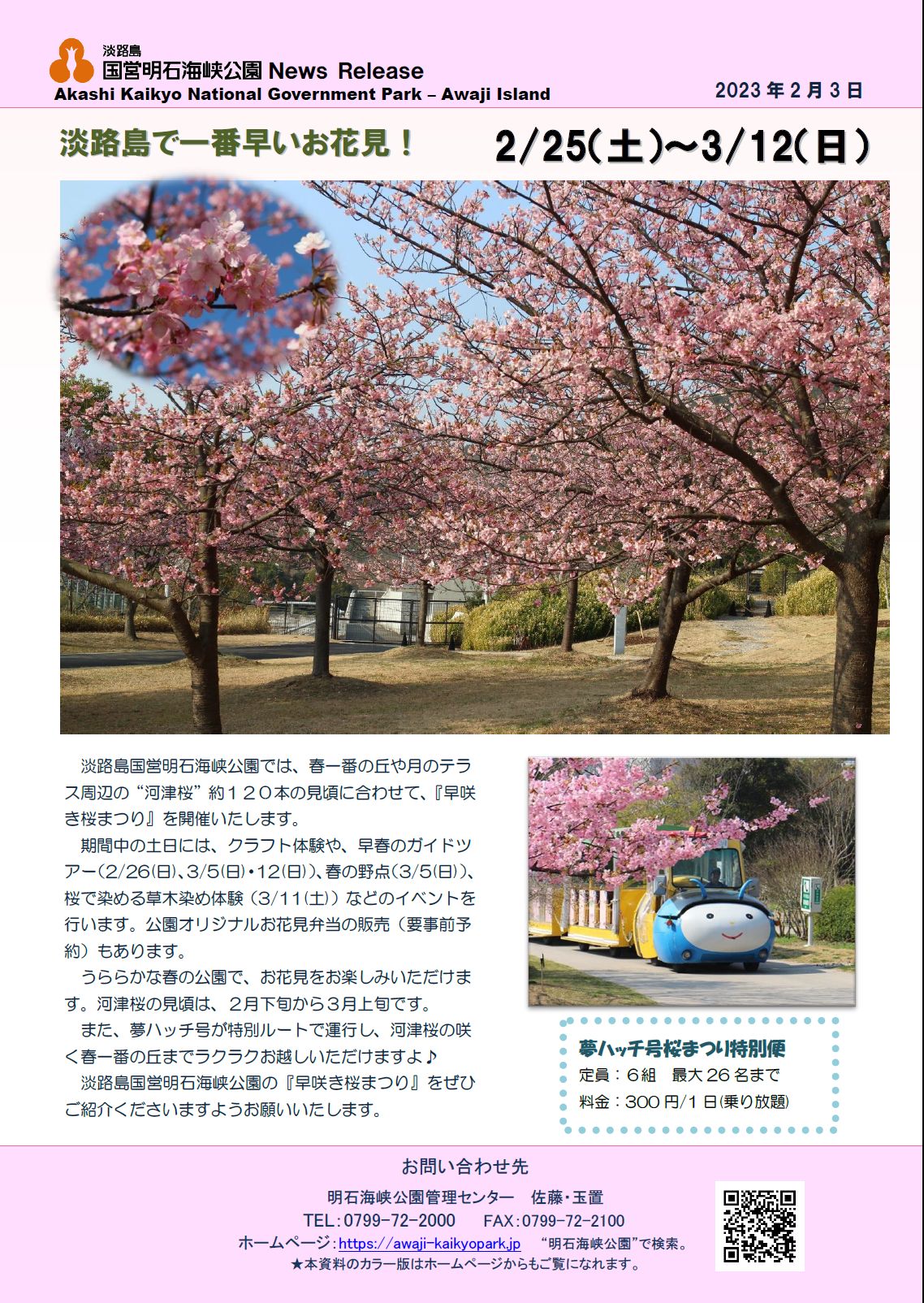 ★記者発表資料はこちら⇒37記者発表◇早咲き桜まつり230203
