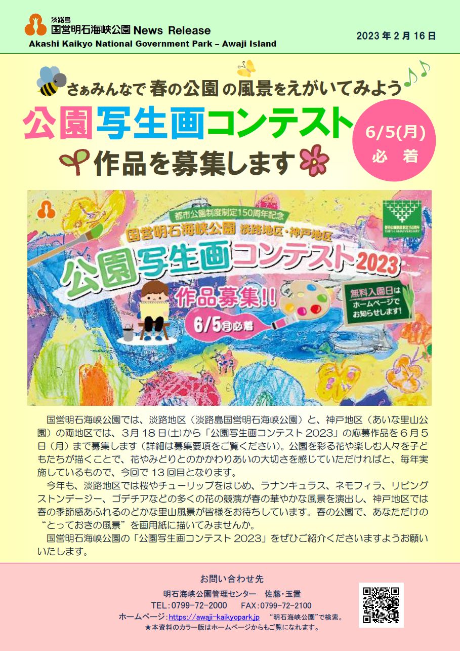 ★記者発表資料PDFはこちら⇒39記者発表◇公園写生画コンテスト作品を募集します!230216(チラシあり)