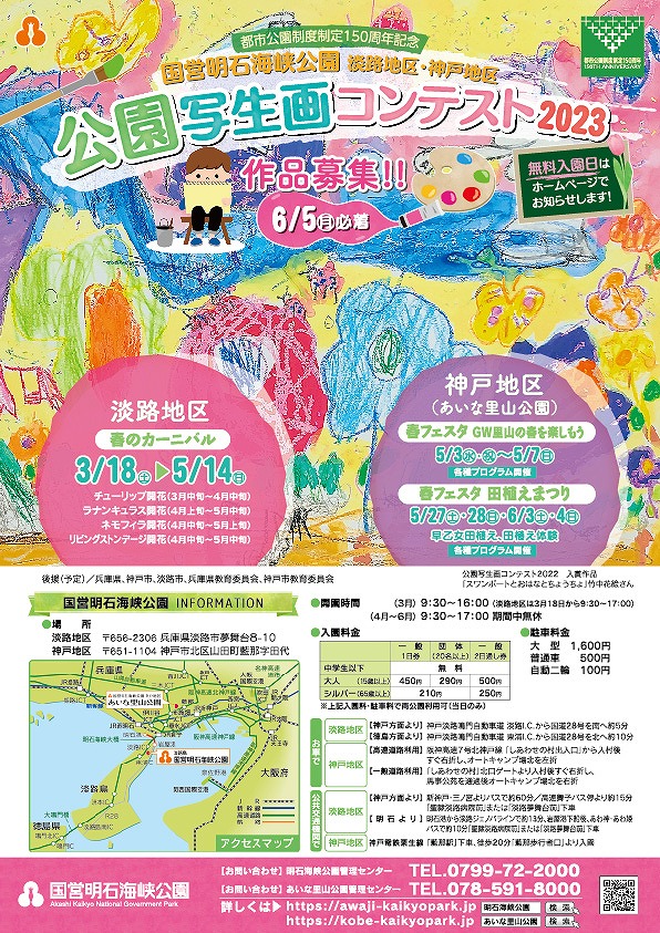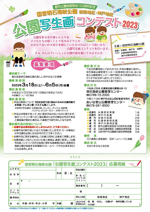 国営明石海峡公園 淡路地区(淡路島国営明石海峡公園)と神戸地区(あいな里山公園)の春の美しい花や心なごむ情景をテーマに描いた作品を募集します。