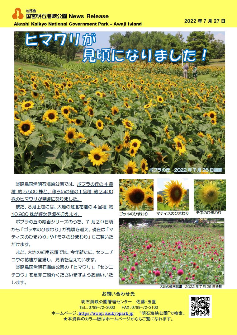 ★記者発表資料はこちら⇒17記者発表◇ヒマワリが見頃になりました220727