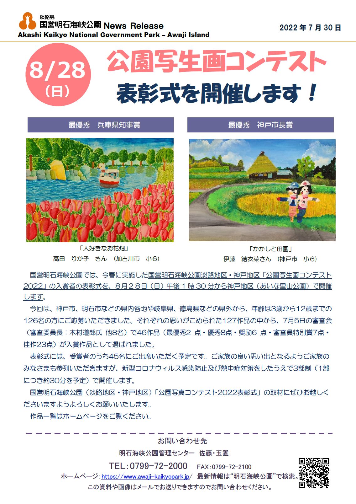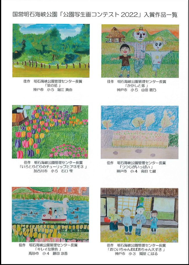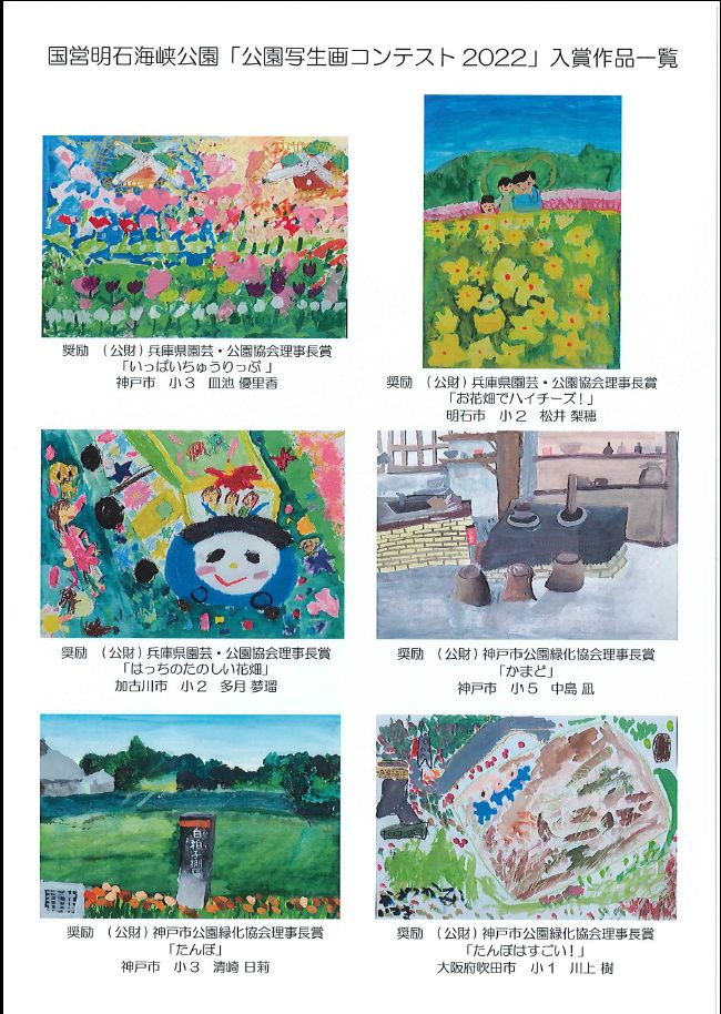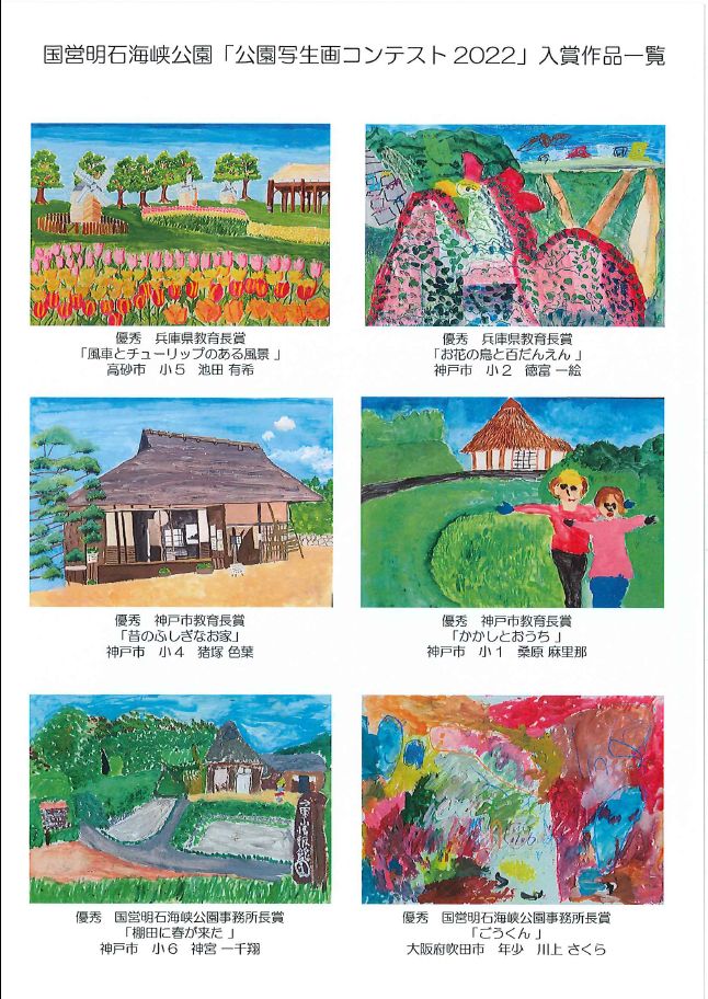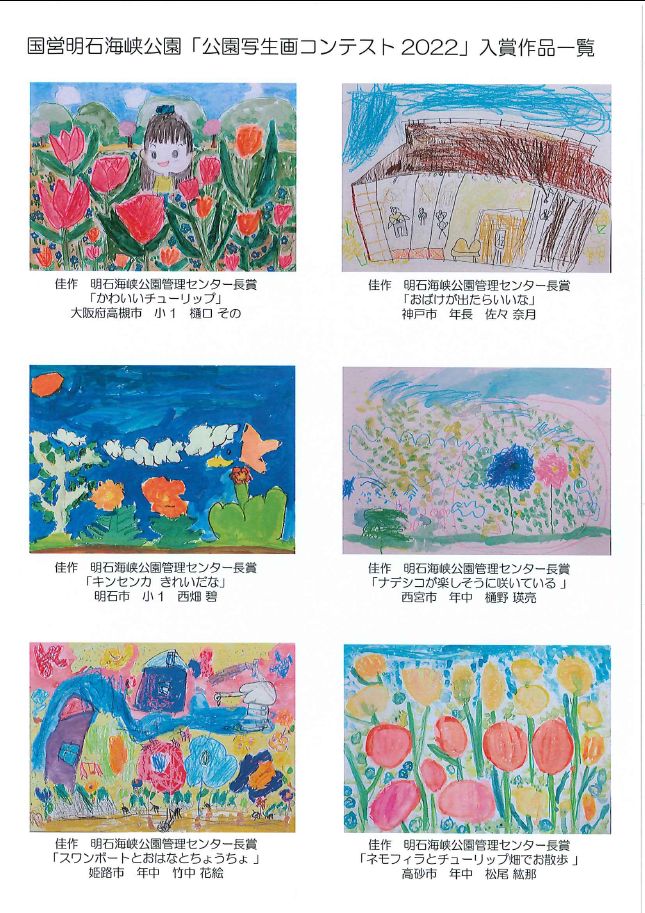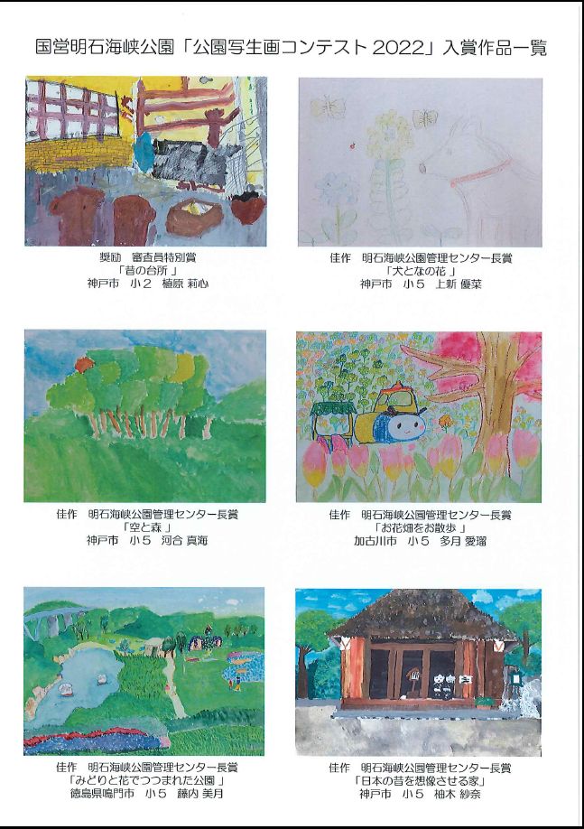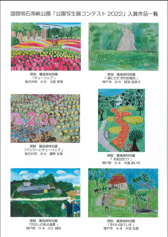 国営明石海峡公園では、今春に実施した国営明石海峡公園淡路地区・神戸地区「公園写生画コンテスト2022」の入賞者の表彰式を8月28日(日)に、