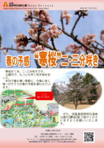 寒桜が1本、二・三分咲きです。公園内でもっとも早く咲き始めました。